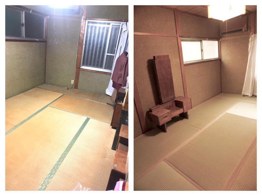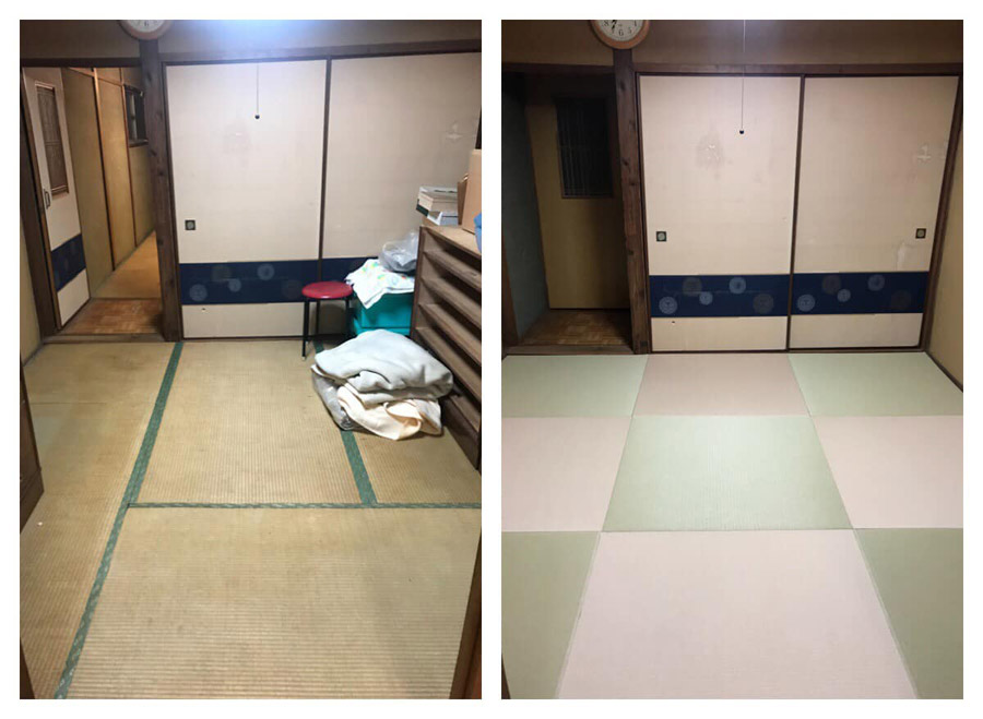 新しい畳に入れ替え終了〜 2019/04/28 奥の和室は表替えだけい草の香りが気持ちいい〜手前の琉球畳は和紙製。白茶色と若草色という色で若草色を大目に構成してもらいました。予想通りあまりモダン過ぎず同じトーンで明るい配色になりました。畳がきれいになると襖の汚れが目立ちます…(笑)自分たちで襖張り替えするつもりですがGW中にうまく張れるかしら〜晴れてる日にした方がよいそうなのでGW後半に襖張り替えしたいと思います。GW中DIYしたい人〜!遊びに来てね〜笑)